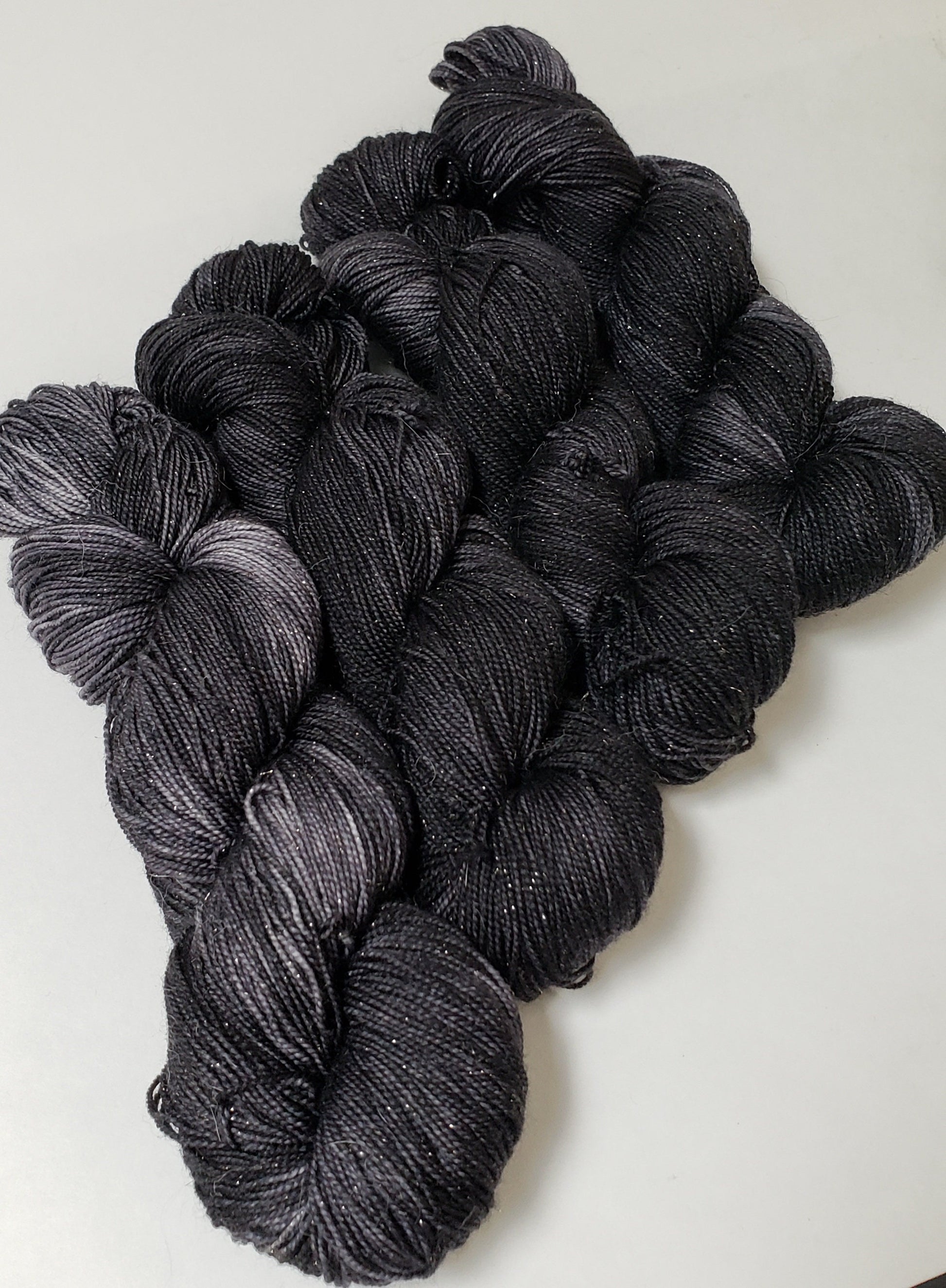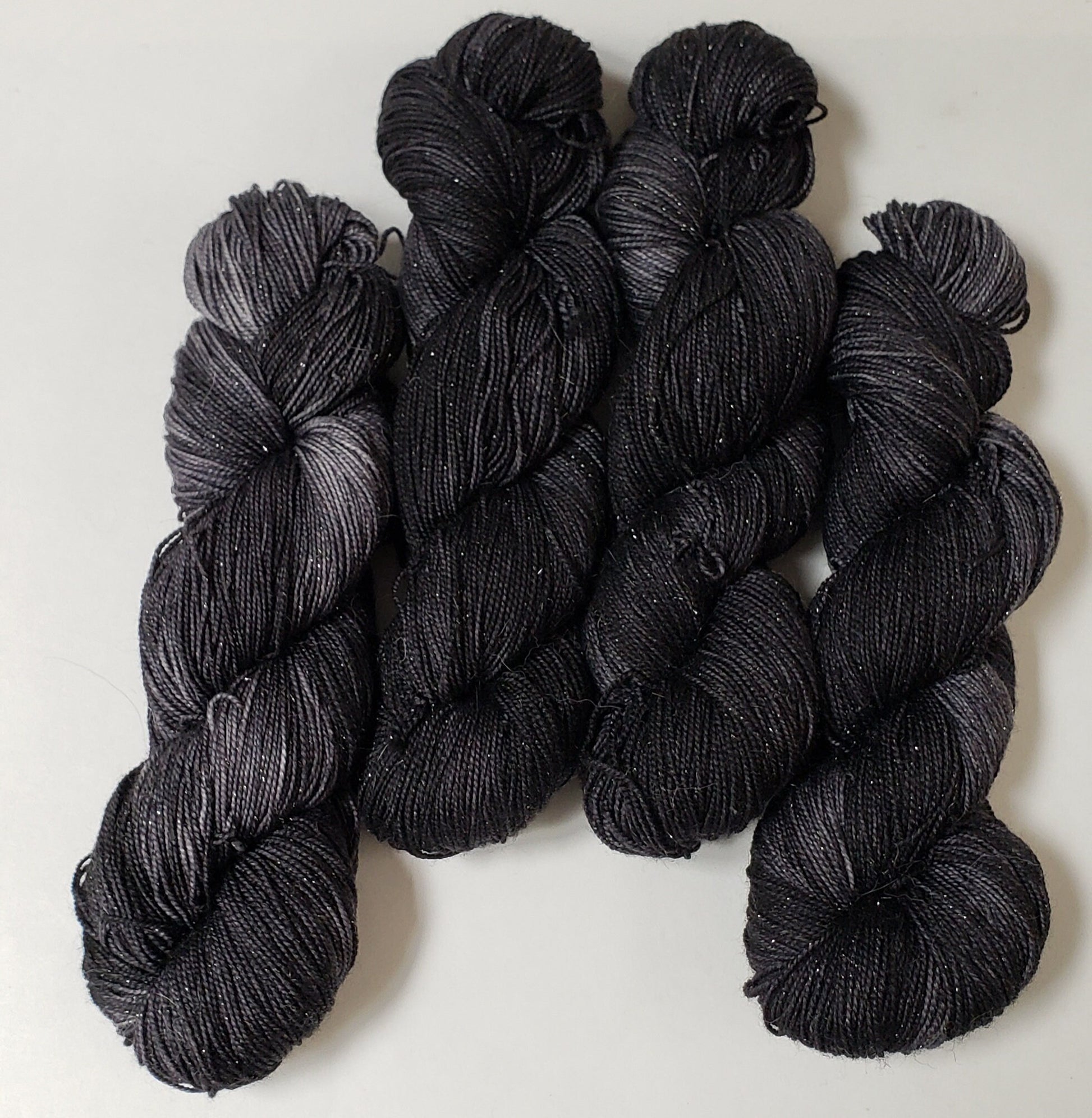 Almost Black in Gold Sparkle Superwash Merino Blend Fingering Weight Yarn