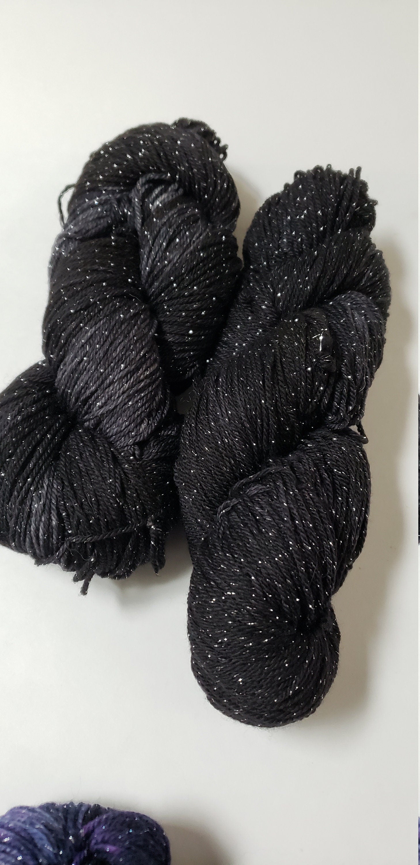 Almost Black in Silver Sparkle Superwash Merino Blend Fingering Weight Yarn