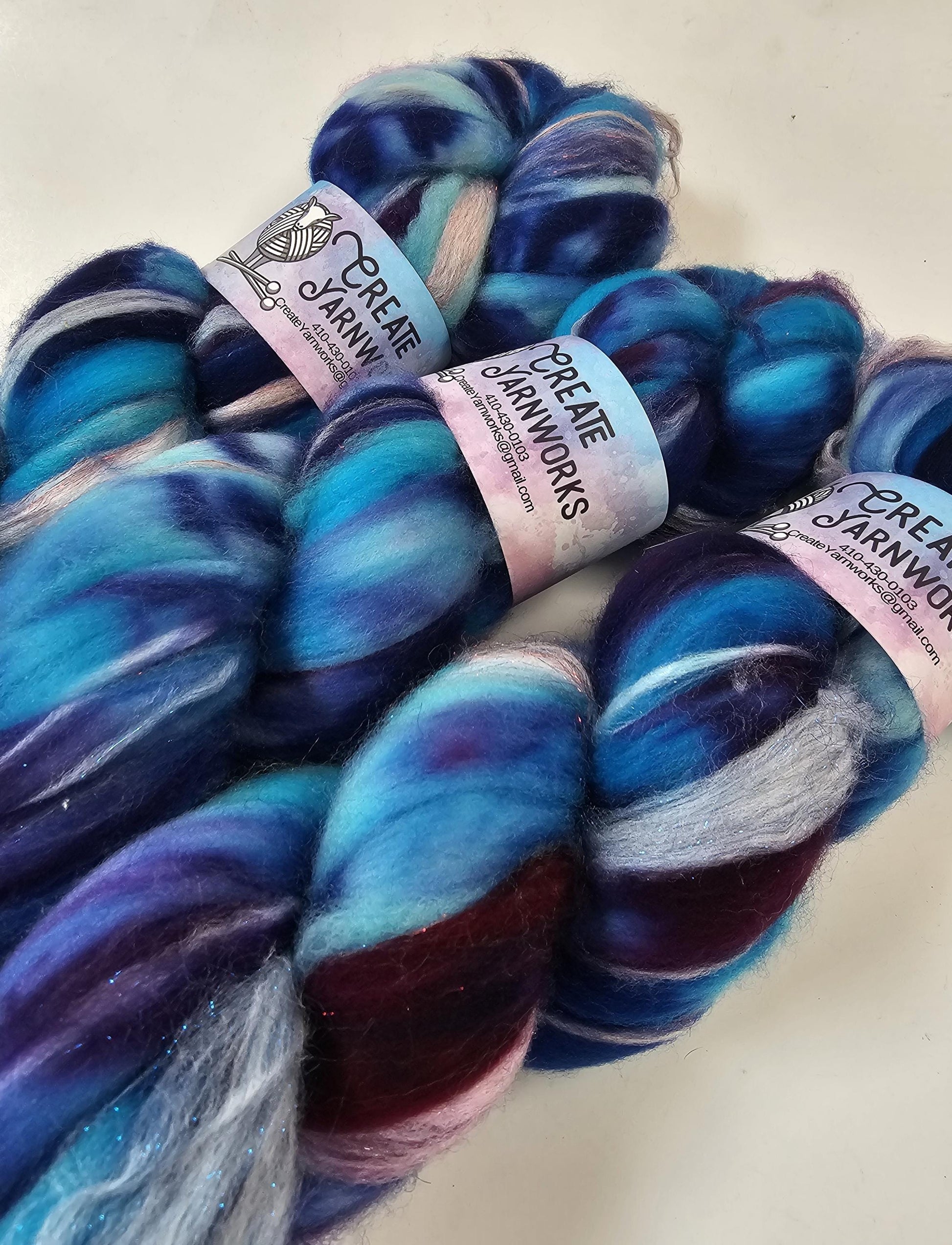 This is a 4oz braid of Superwash Merino and Stellina blend (79/21%).