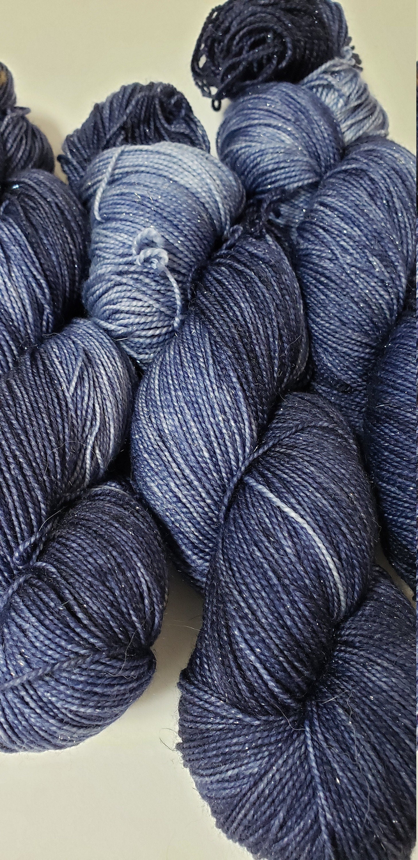 Navy in Gold Sparkle Superwash Merino Blend Fingering Weight Yarn