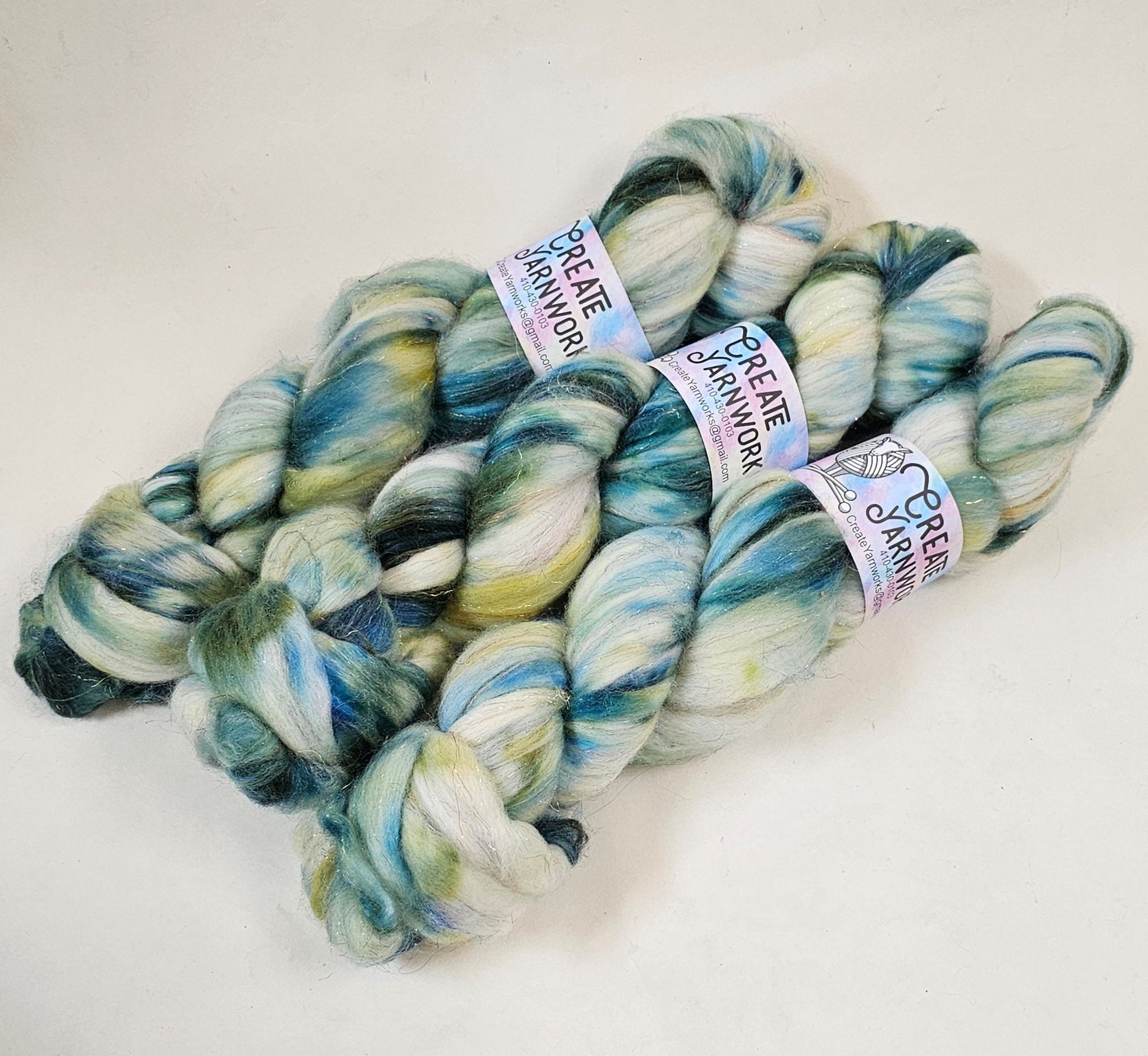 Oceans Deep in Superwash Merino & Stellina Blend 4oz braid