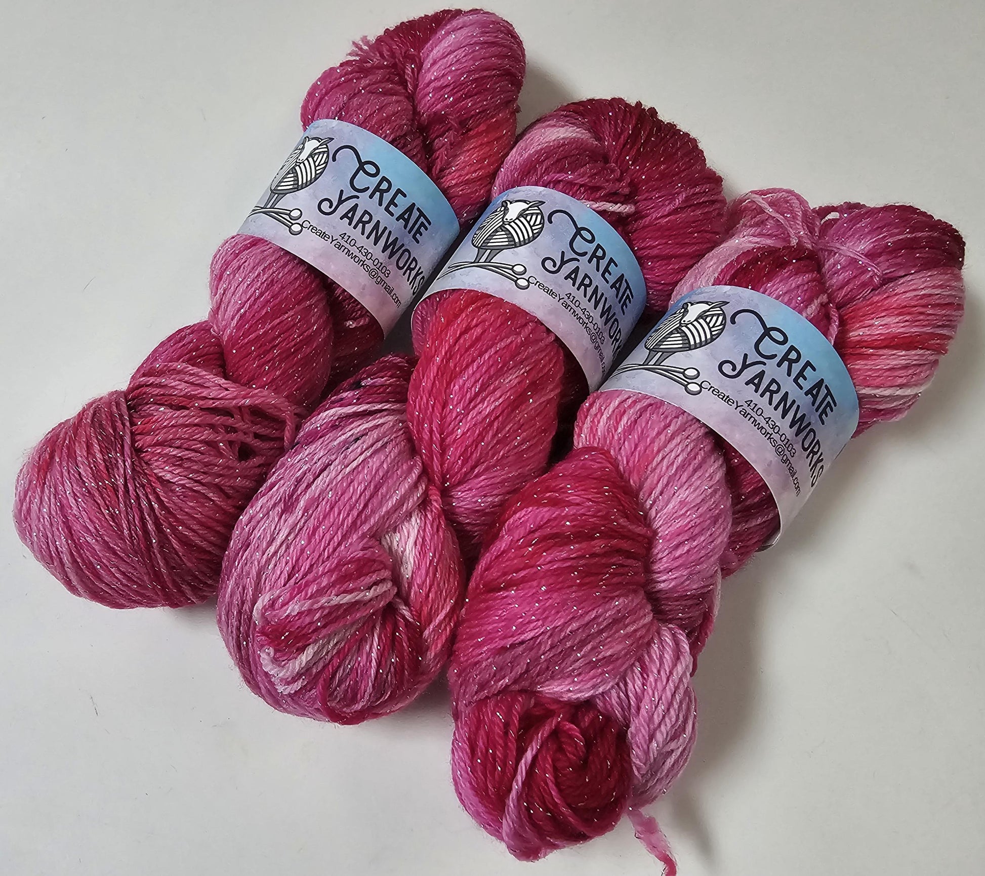 Pretty in Pink in Silver Sparkle Superwash Merino Blend Fingering Weight Yarn