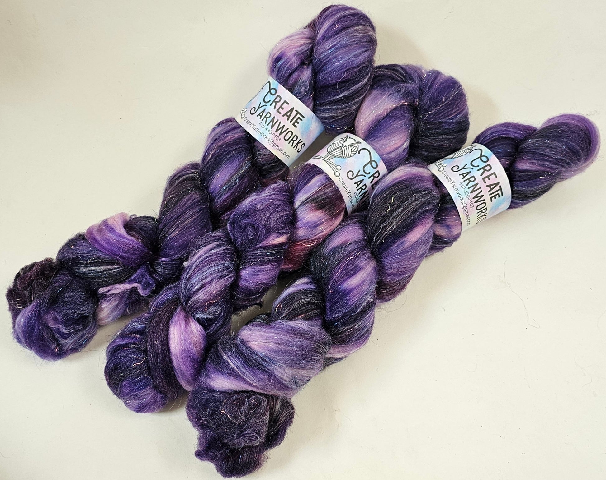Purples in Superwash Merino & Stellina Blend 4oz braid
