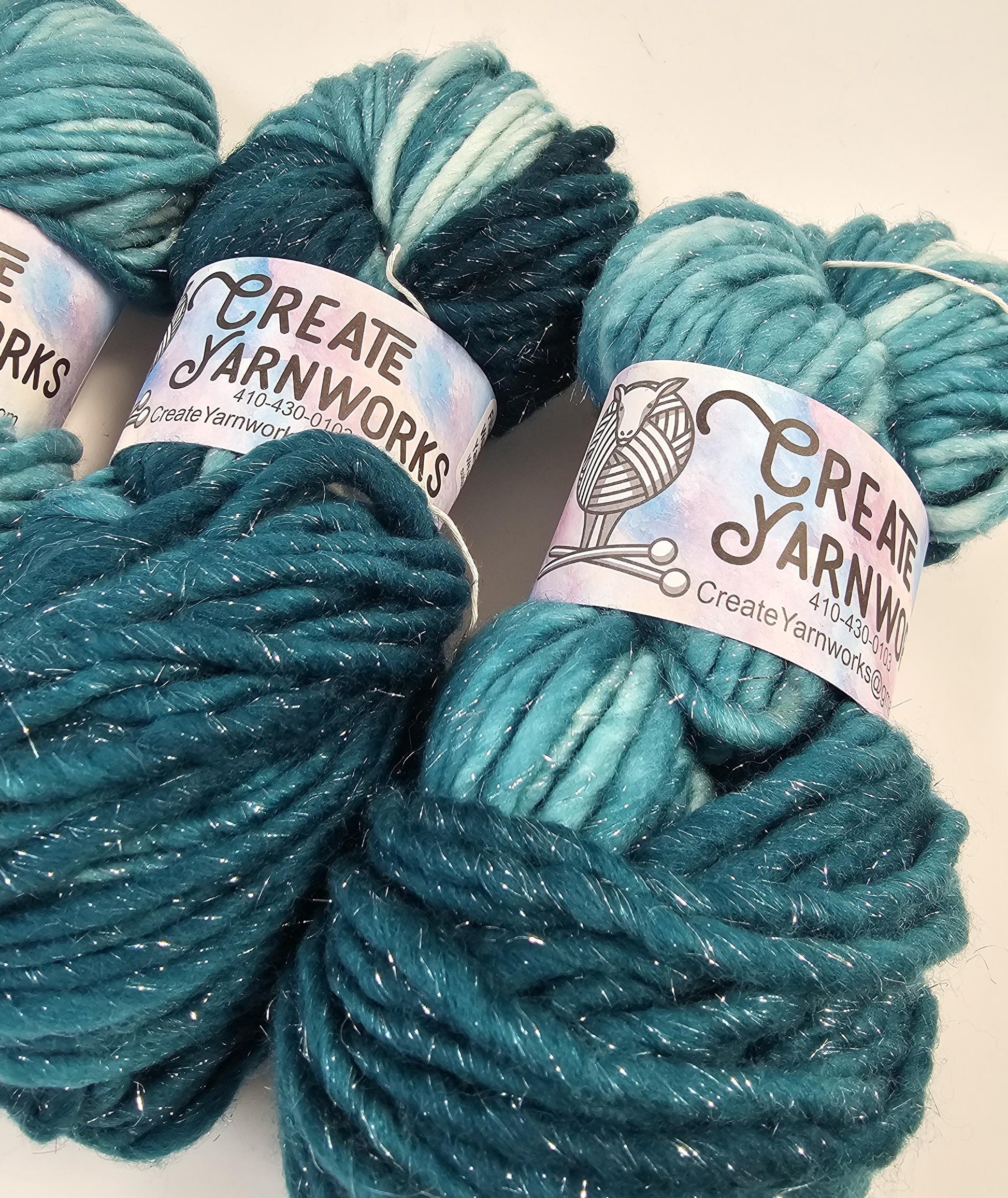 Tempting Teal in Silver Sparkle Superwash Merino Blend Super Bulky Weight Yarn